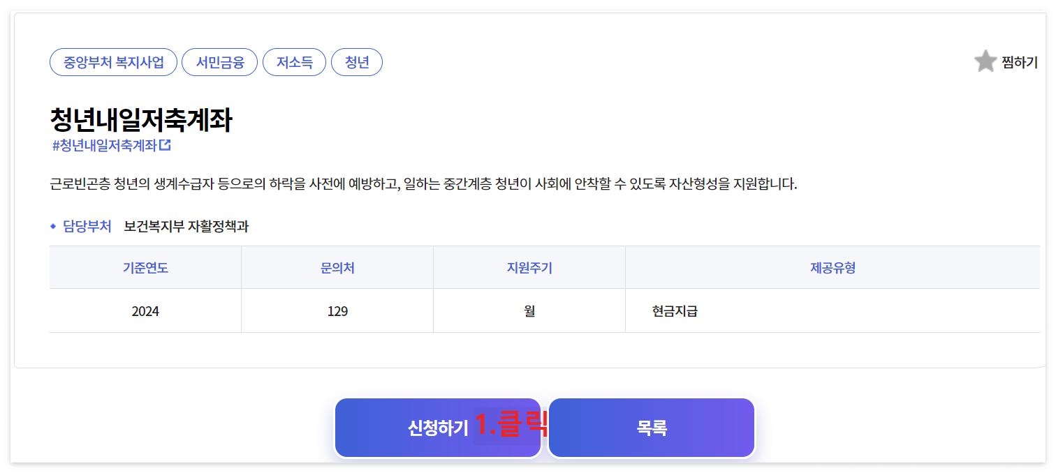 1.청년내일저축계좌 신청 홈페이지에 접속합니다.